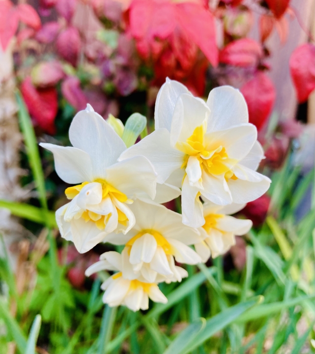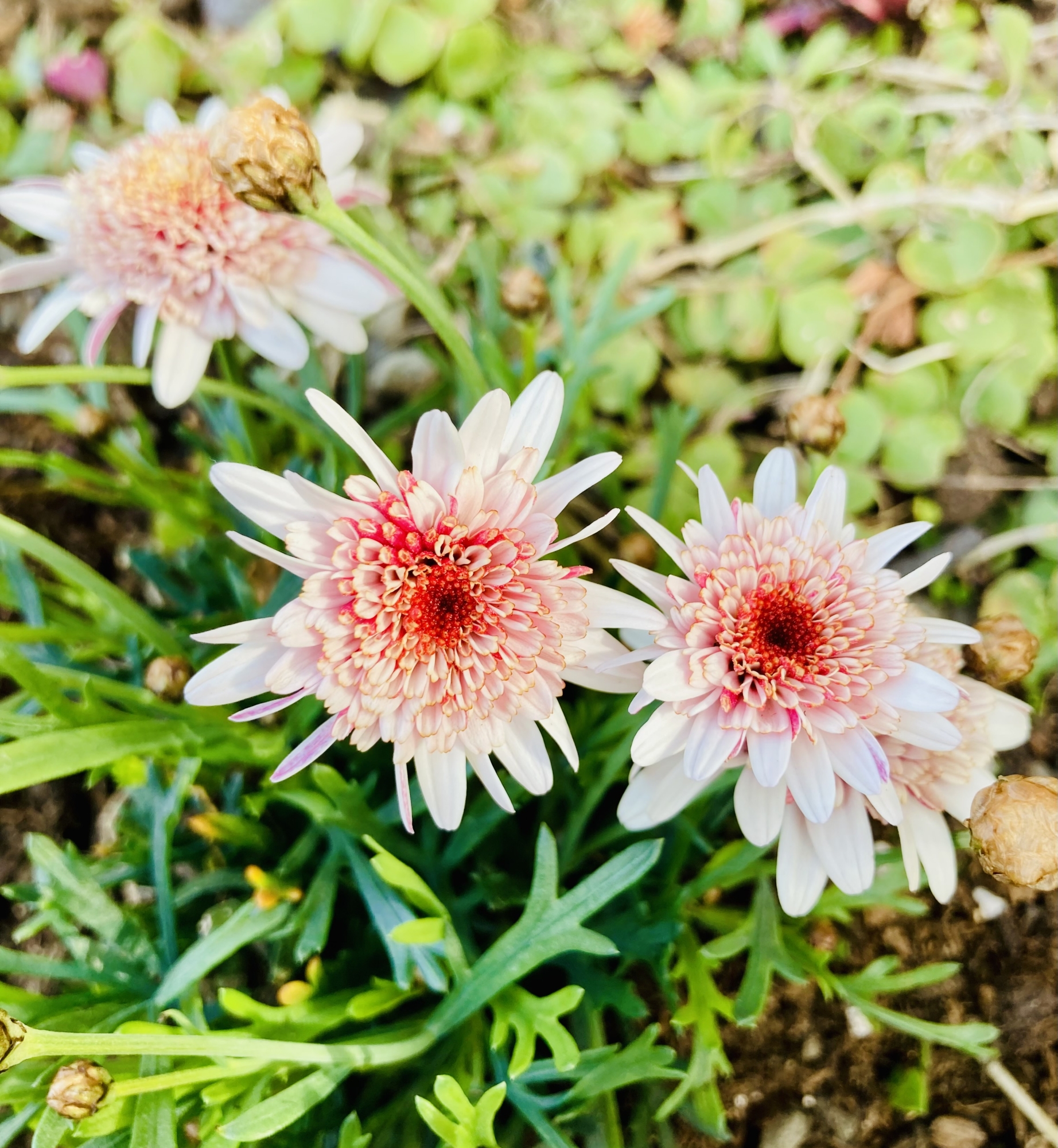 冬の庭を明るくするビオラや葉ボタン咲いてます。フワフワのロータス可愛いシルバーリーフです。日本水仙が咲き黄色の連翹も花芽がついてきました。暦では寒い冬ですがこのところの暖かさに目覚めた早春の花々が春近しと喜んでいるようです。