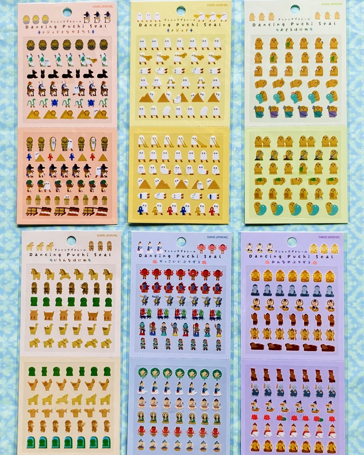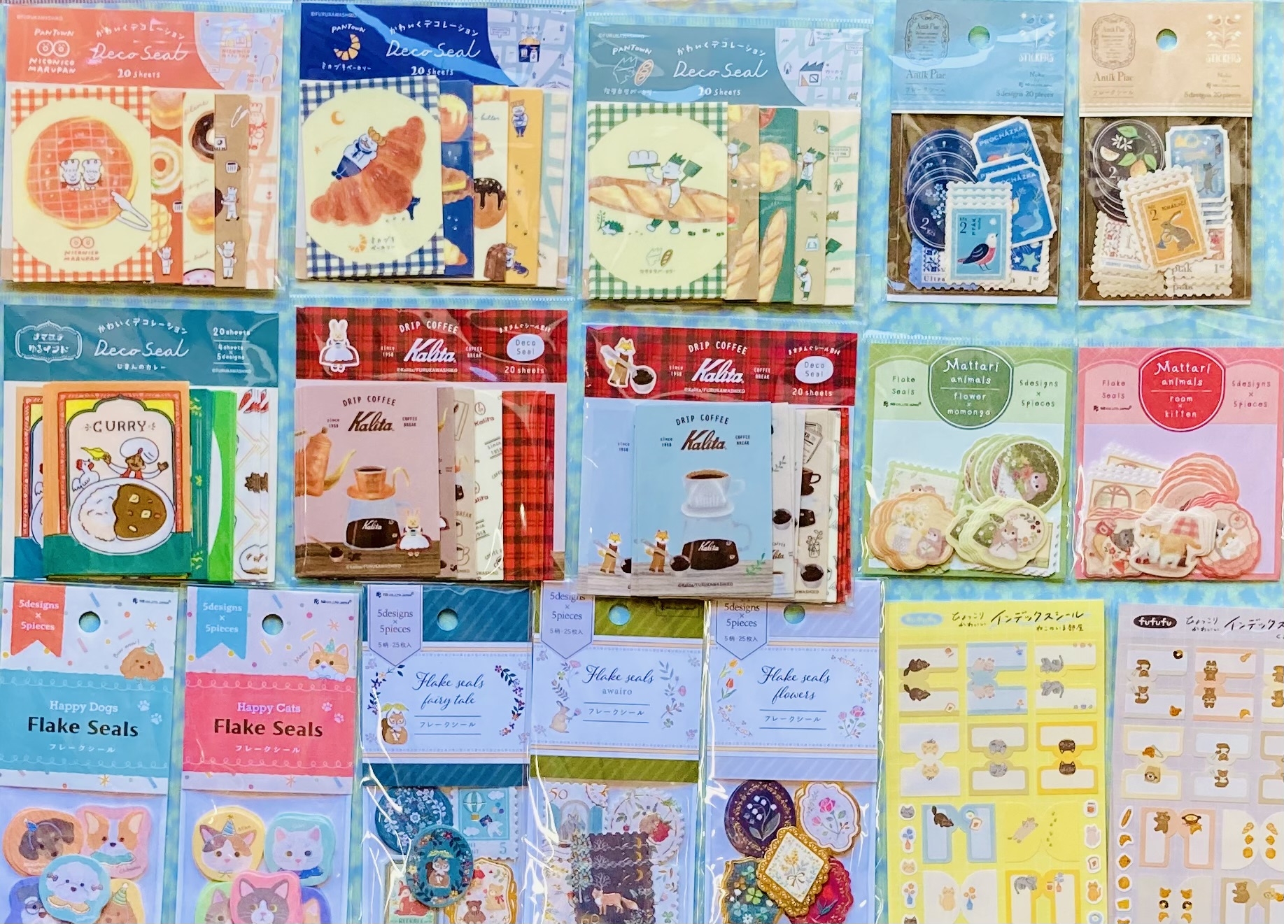 イラストレーターの「kazuemon」「サタケシュンスケ」デザインの「クリエイドシリーズ」は可愛い動物、野原に立ち寄る「みちくさシリーズ」や看板猫の「ねころびレトロ」はメモやレター、フセンなども同柄で揃います「うたたねシリーズ」「prierシリーズ」は落ち着いた色目とデザインです。花言葉と幸せモチーフを合わせた「フルール・エ・シャンス」手帳にぴったりのミニシール、流行りの重ねるシールも窓辺やお布団などと可愛い動物を合わせてデコれるシリーズや一部を重ねて貼ることでお洒落なデザインなどがあります。他にも沢山のシールが随時シリーズと共に発売されます。