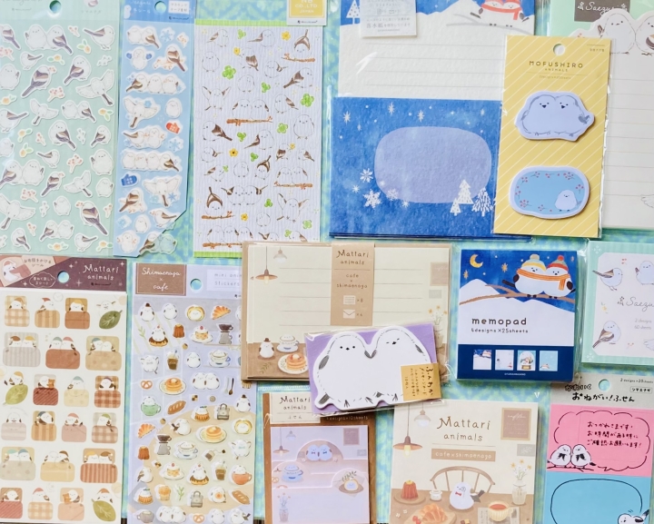 白い羽毛でまん丸フォルム、目とくちばしが真っ黒でとても可愛い小さな姿のシマエナガはその特徴から可愛いグッズが数多くあります。紙文具にも様々なシリーズに登場する売れっ子スターです。「雪の妖精」と言われる真っ白なシマエナガは冬のモチーフとしても親しまれています。これからのシーズン歳時記柄としても親しまれるシマエナガ柄を一部ピックアップしました。