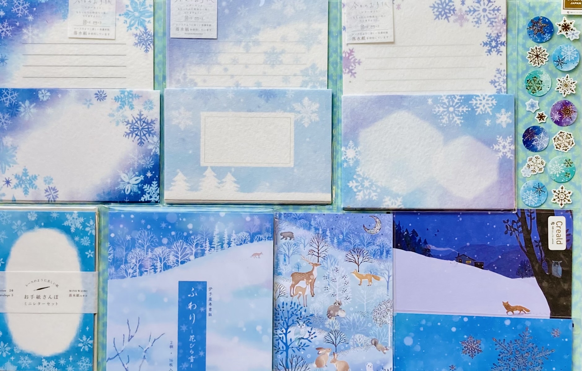 大雪、冬至を迎える12月。雪の便りも届き始め寒い季節になっていきます。雪の結晶や雪モチーフのレターやシールなどをピックアップしました。六花、雪華、冬の花、風花などの呼び名がある雪モチーフは幻想的で神秘的な印象があり清らかなデザインが揃います。