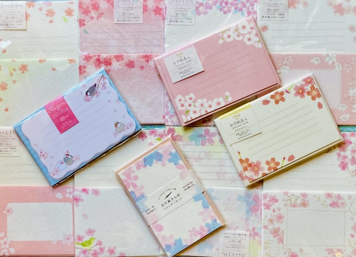 3月後半から4月前半はピンク色に染まる桜の季節。満開の華やぎ、夜のほのかな花あかり、散る花びらの雅な舞い、、桜は人々を魅了します。新たな学びの場を祝うかのような桜色の入学式、新たなスタートをきった社会人を励ますかのような街並みの桜、今年も健やかに見上げる桜の木、それぞれの場面に桜がある日本の春です。桜モチーフの便りセットをピックアップしました。