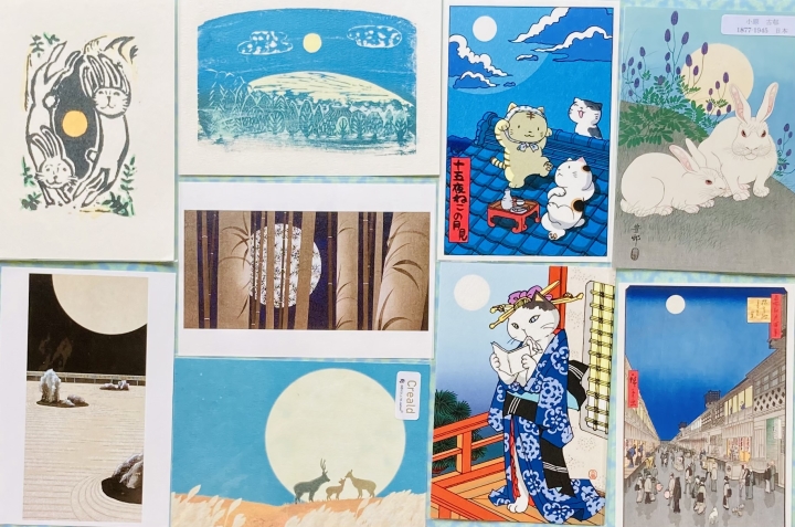 美しい月が浮かぶ「中秋の名月」今年は幾分遅く10月6日、満月(十五夜)は翌日7日になります。穀物の収穫を感謝しご縁を願うお月見団子を、豊作願いと神様の依り代としてススキを飾りお供えします。空気が乾燥し澄んできて月がはっきり見え空の位置もちょうどよくなる1年で1番の月を秋虫の声と涼風の中で眺めながらの夜を過ごす素敵な日本の秋です。十五夜に合わせて月モチーフのカードをピックアップしました。