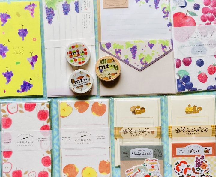 今年は9月20日から彼岸の入りとなります。三途の川を挟んで私たちが住むこちらの岸「此岸」とご先祖様の住むあちらの岸「彼岸」西のかなたにあるとされ太陽が真西に沈む秋分にお墓参りをする風習となりました。暑さ寒さも彼岸までと言われるように空が高く夜も長くなり暑さもやわらぐ季節です。秋の味覚モチーフを集めてみました。
