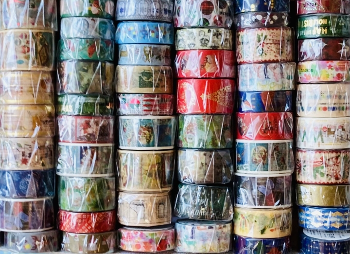 シールやマスキングテープなどクリスマスモチーフの商品が揃います。マスキングテープには店舗包装にピッタリ25メートルでテープカッターで使えて便利な強粘着341円(税込)という非常にお買い得なシリーズも揃います。マスキングやシールはクリスマスシーズンを彩る施設などのポップやパーティインテリア、オリジナルツリー飾りなど様々な雑貨作りが楽しいアイテムです。またマスキングを利用したラッピング素材ワシャワシャはプレゼント梱包材やクリスマス飾りのアレンジにお使いいただけます。