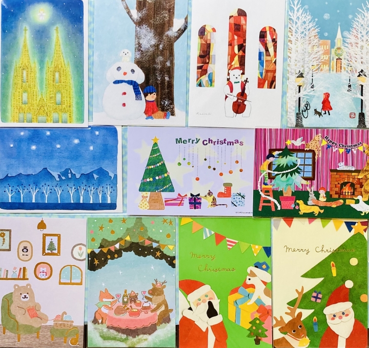 フランス「カルトダール社」の厚紙箔入りポストカードは数人のアーティストがそれぞれ個性的で可愛いデザインを描き毎年好評です。クリスマス柄ですがメッセージはハッピーニューイヤーのものもあり年末年始のインテリアとしても使っていただけます。スウェーデン「picutura社」のポストカードは作家「リシマーチン」の描く長年ヨーロッパ全土で愛さる定番デザインで子供や動物、サンタさんなどクリスマスらしい世界を温かなタッチ、細やかな描写で表現されていてファンも多い人気ポストカードです。