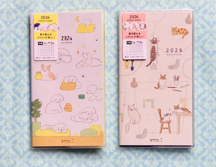 その他ノート部分たっぷりのB6,犬と猫の可愛いデザインスリム型などもあります。