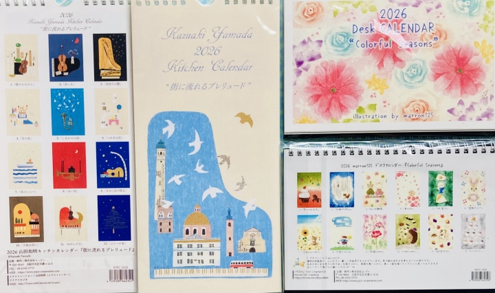 山田和明さんは動物、風景、音楽モチーフなどをガッシュや透明水彩などで描く絵本作家です。今年は音楽モチーフ「街に流れるプレリュード」が発売。スリム型で柱などにも掛けれるキッチンカレンダーを入荷しました。ふんわり優しい絵が特徴のmarron125さんのイラスト卓上カレンダーはA5サイズで見やすい大きさです。
