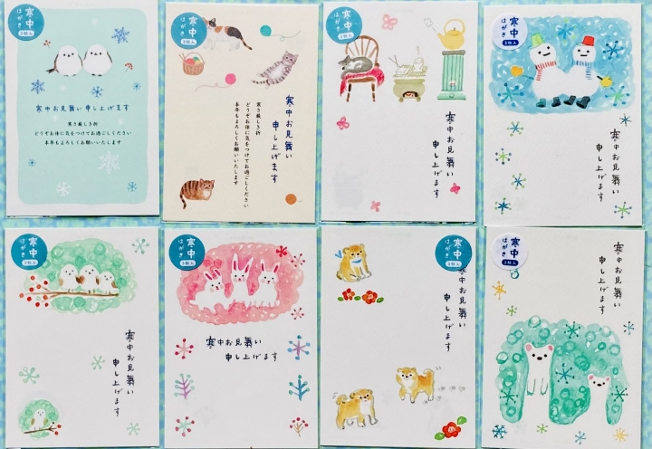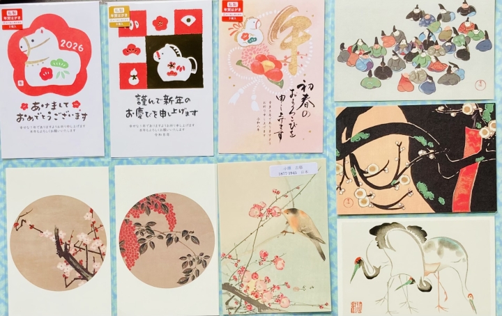 年賀用はがきや寒中見舞いはがき(各種3枚入り)年始挨拶に使える梅や鶴など日本画家モチーフも色々とあります。