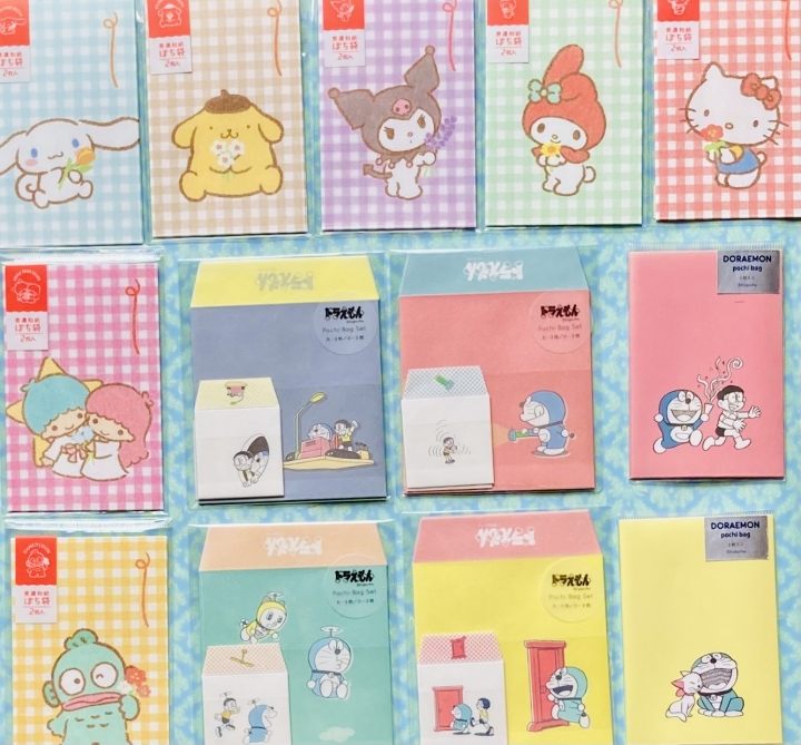 来年の干支である午モチーフをはじめお年玉に使えるデザインが揃いました。ほっこり可愛いデザイン、ユーモア系、落ち着いた招福柄など様々です。お年玉以外にも使える人気キャラクターなどのぽち袋もありますのでお子様の好みに合わせて選ぶこともできます。ぜひご活用ください。