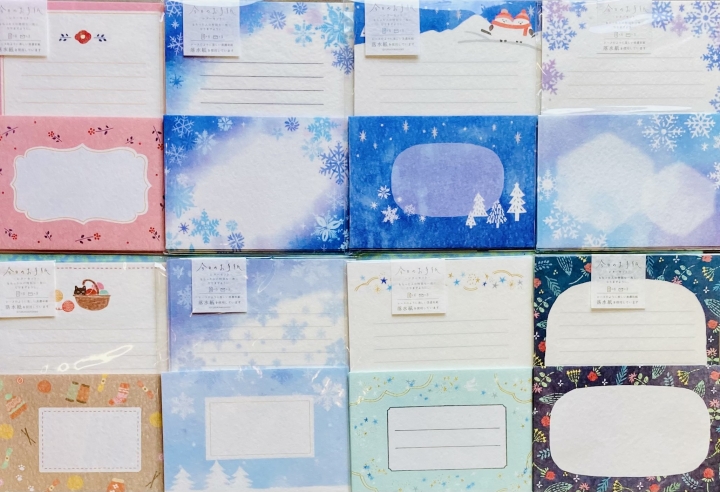 雪景色、雪の妖精シマエナガ、あったかモチーフ、冬の花などのモチーフをデザインした季節のレターが揃います。年の瀬のご挨拶や年末年始のお誘いなどにお使いいただける商品です。可愛いものから落ち着いた歳時記デザインまでありますのでシーンに合わせてお選びいただけます。人気のそえぶみ箋も冬柄数多く揃います。
