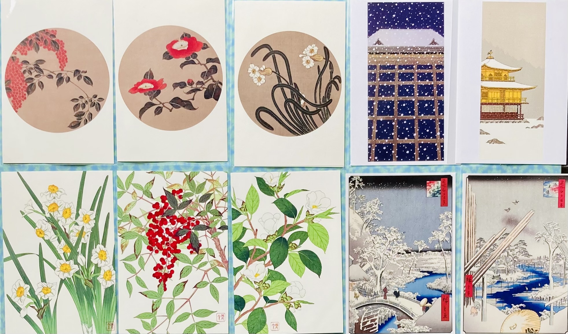 秋桜、萩、菊、秋果実など色づく艶やかなデザインが揃うポストカードや一筆箋は季節のお便り、メッセージにピッタリです。ポストカードはインテリアとしても使えますので部屋にも季節を取り入れてお楽しみください。