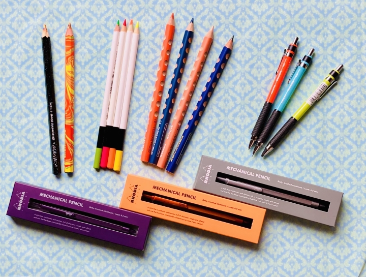 1806年創業の老舗画材ブランドのドイツ「リラ」社の太軸三角鉛筆はお子様でも握りやすく芯も太い折れにくい鉛筆なので持ち方練習にもなります。三角型で疲れにくく長時間のデッサンにも適しています。チェコ「コヒノール」社のマジックペンシルは1本で3色が混ざったマーブル鉛筆で楽しくイラストやポップが描けます。蛍光鉛筆も可愛い色が揃います。ガラスや金属に書けるグラス色鉛筆やオーストリアやフランスのシャープペンシルも老舗ブランドが揃います。