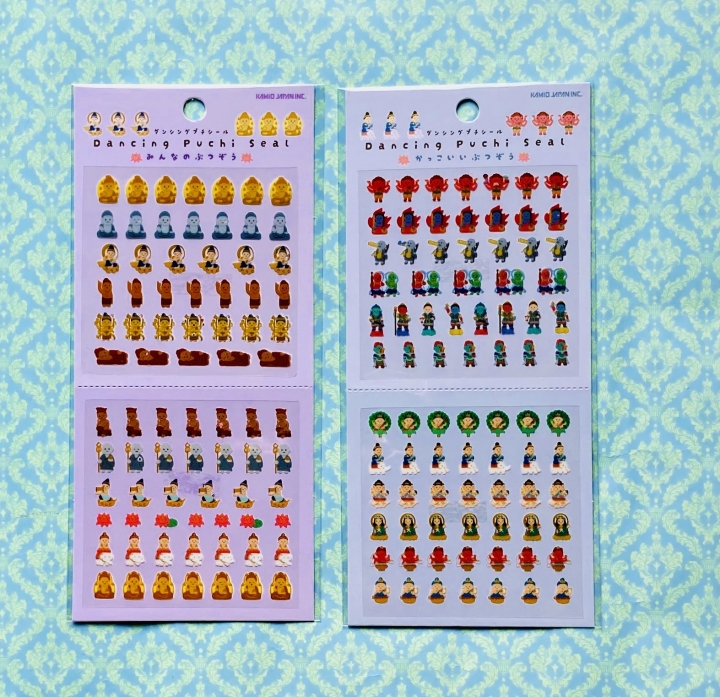 興福寺の阿修羅像、中宮寺の如意輪観音像、東大寺の廬舎那仏像、法隆寺の百済観音や金堂天蓋の天人や飛天像など飛鳥・奈良時代を代表する仏像を可愛くデザインした佛メモは一枚ずつぼかし色とカラーイラストが入り275円(税込)お土産にもぴったりです。図鑑シリーズのシールには阿修羅や大仏など奈良所蔵の仏像を含めた仏像柄、新商品には奈良の寺社や名所&グルメを集めた奈良編や大和郡山が有名な金魚編もありますダンシングプチシールも可愛い仏像が描かれ奈良所蔵も多くあります。人気のレターブックシリーズより中川政七商店テキスタイルも奈良らしい柄が含まれています。その他大仏が描かれたミニカードや一筆箋も入荷しました。